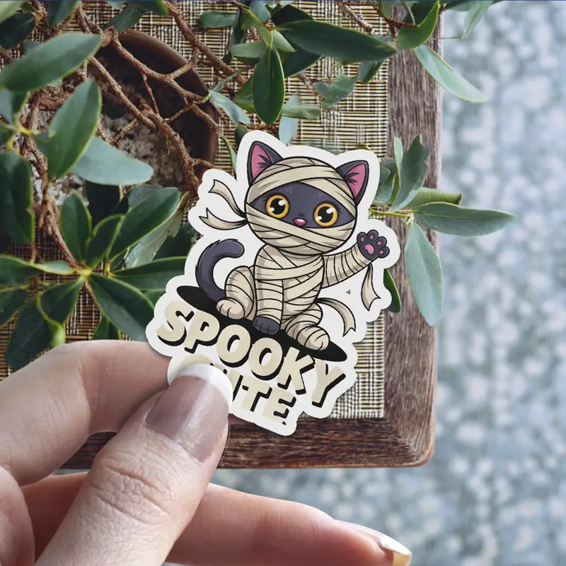 Cute Halloween Cat Spooky Cute Vinyl Sticker 4 3×2.75′