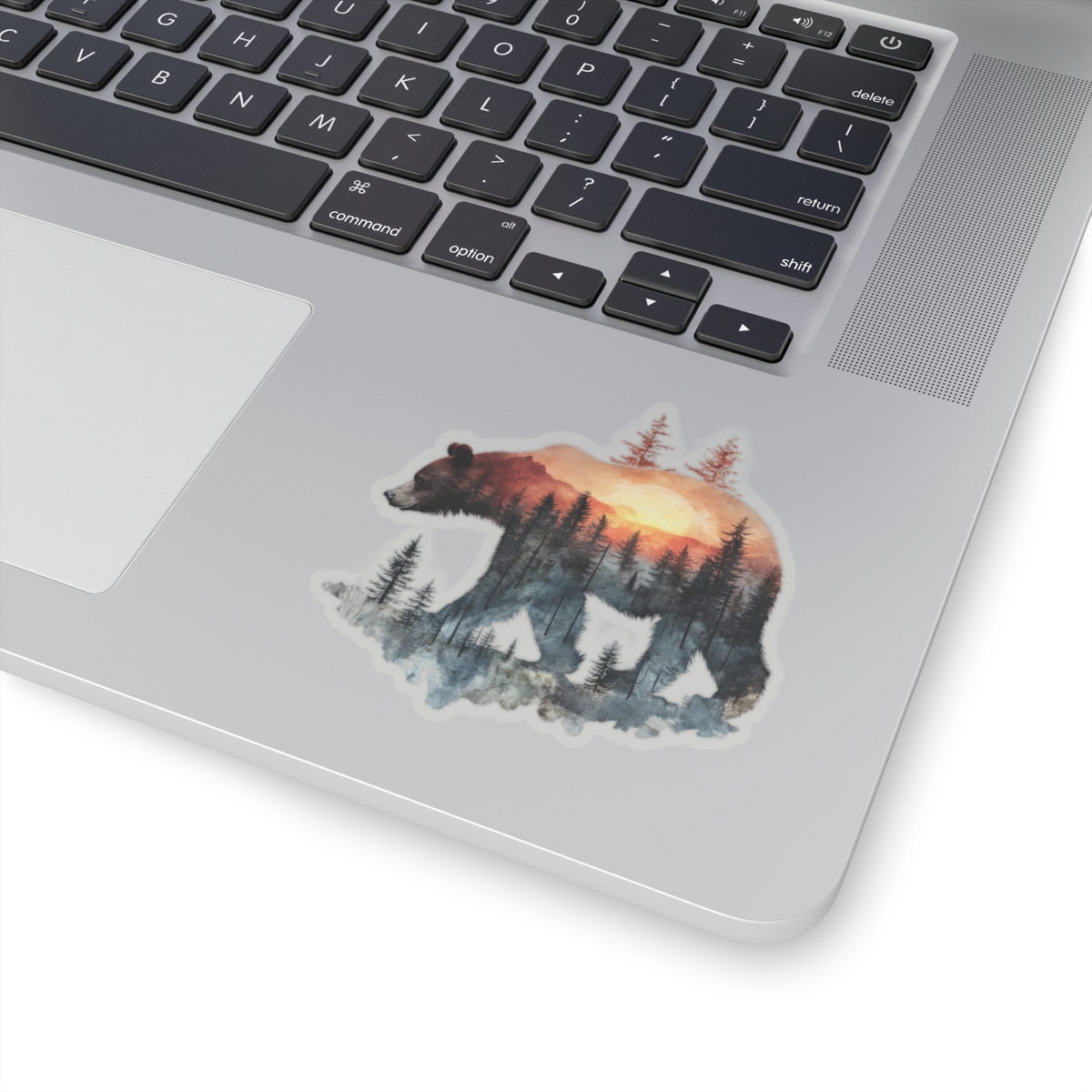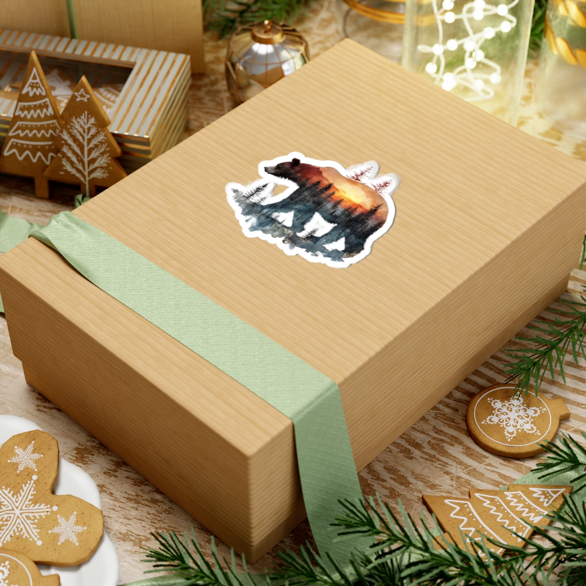 Nature-Inspired Double Exposure Bear Vinyl Sticker